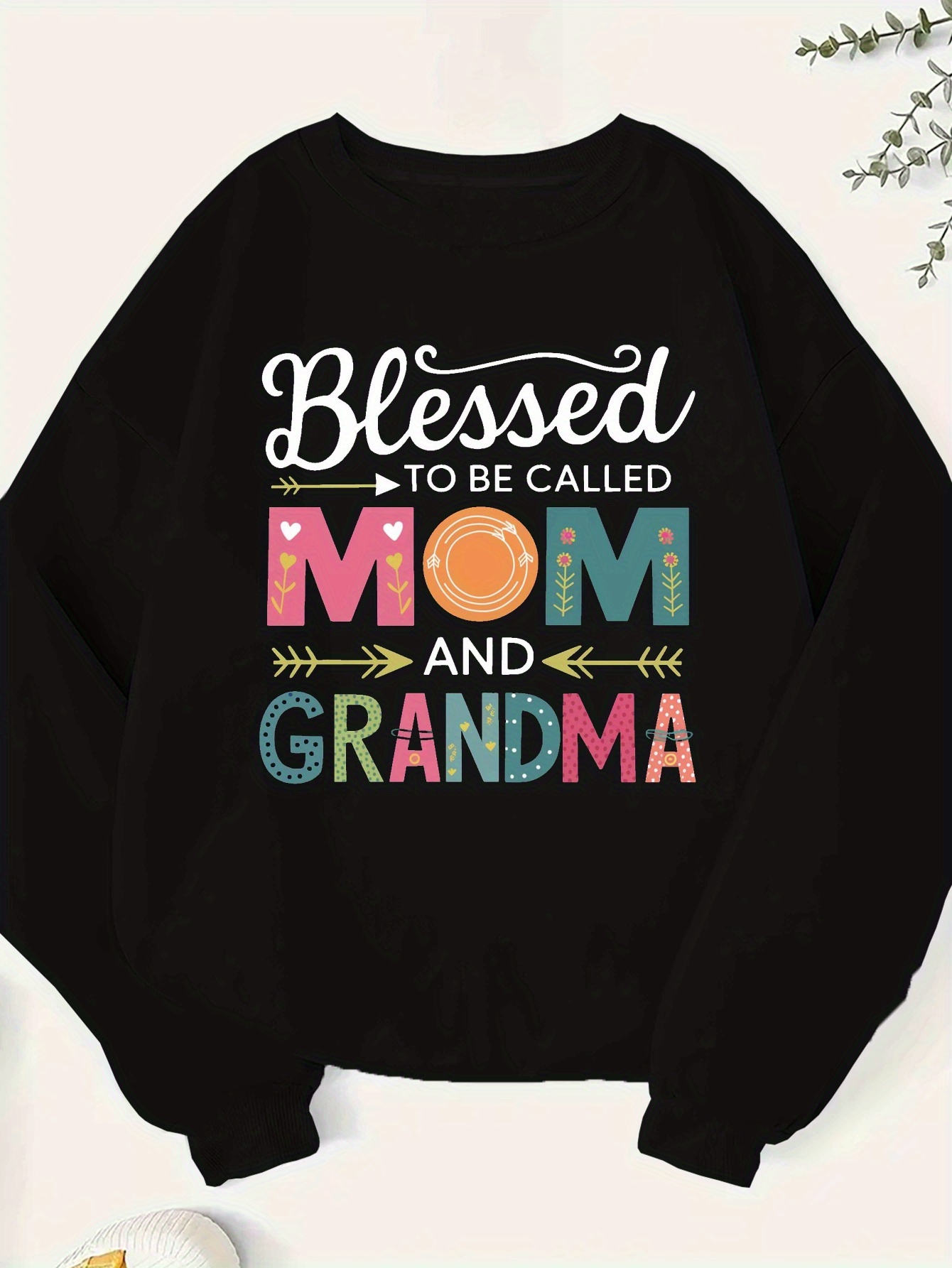 [Mom & Grandma Sweatshirt] 100% Polyester Blessed to be Called Mom & Grandma Women's Plus Size Casual Sweatshirt - Vibrant Green Geometric Print, Machine Washable, Autumn Winter Warmth, Family Gift Idea, Graphic Crewneck Top