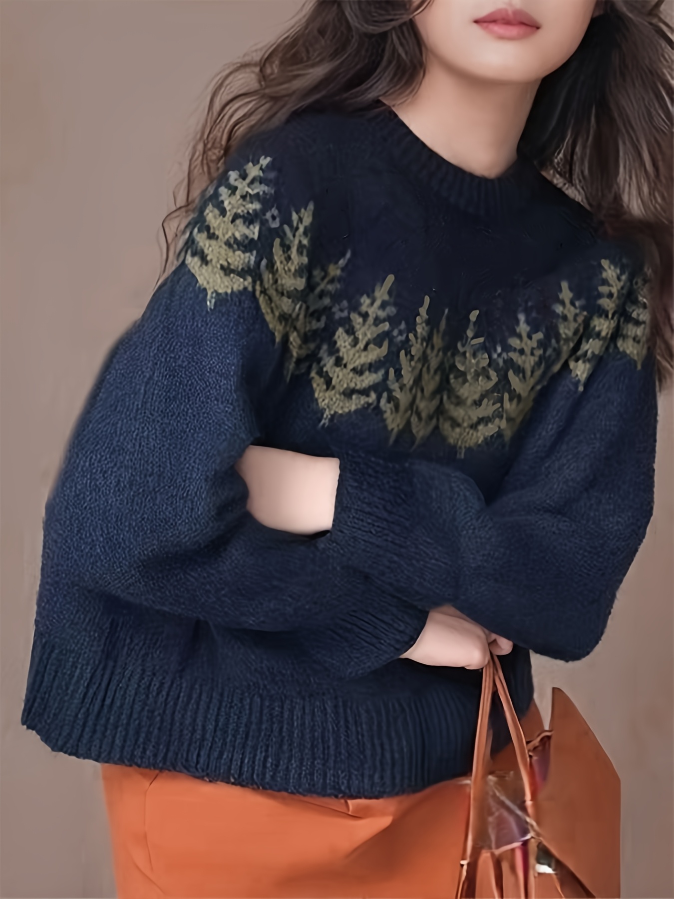 Women'S Cozy Fleece-Lined Christmas Tree Sweater - Navy Blue & Green Holiday Sweater with Soft Fleece Lining, Loose Fit Pullover for Fall/Winter, Casual & Formal Wear, Perfect for Home, Office, or Parties, Christmas Sweater