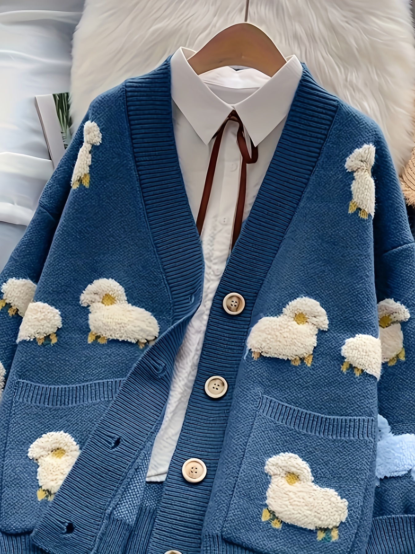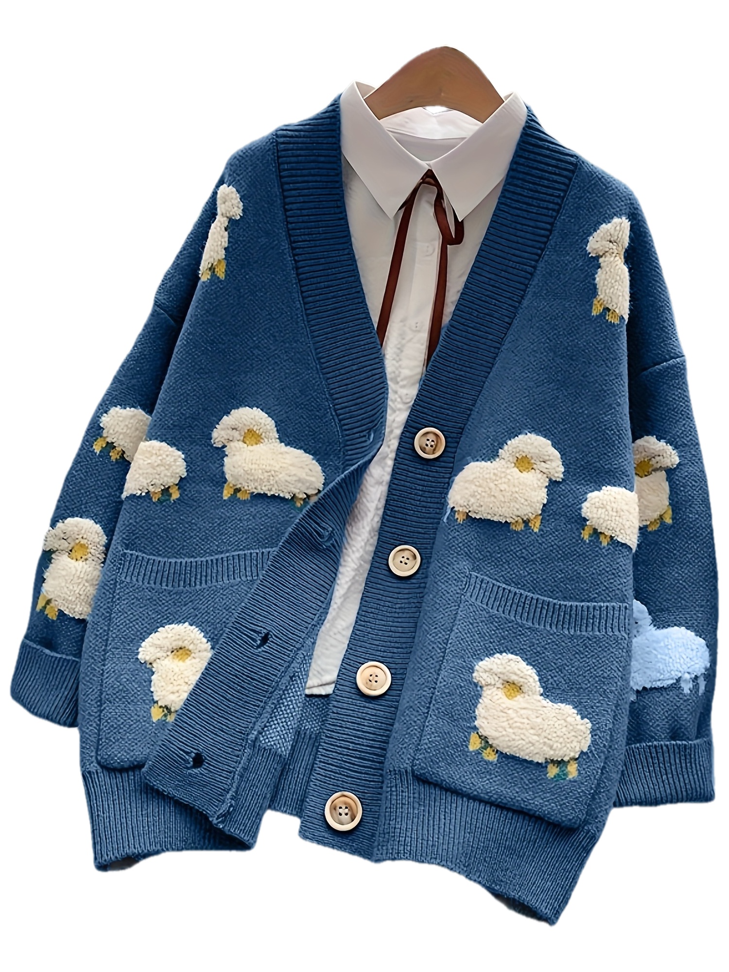 Women'S Elegant V-Neck Cardigan - Soft Sweater Coat with Button Front, Long Sleeve Fall/Winter Outerwear, Chic Layering Piece for Casual & Formal Outfits, Cardigan Sweater, Winter Clothing, Geometric Pattern, Stylish Coat, Office Wear