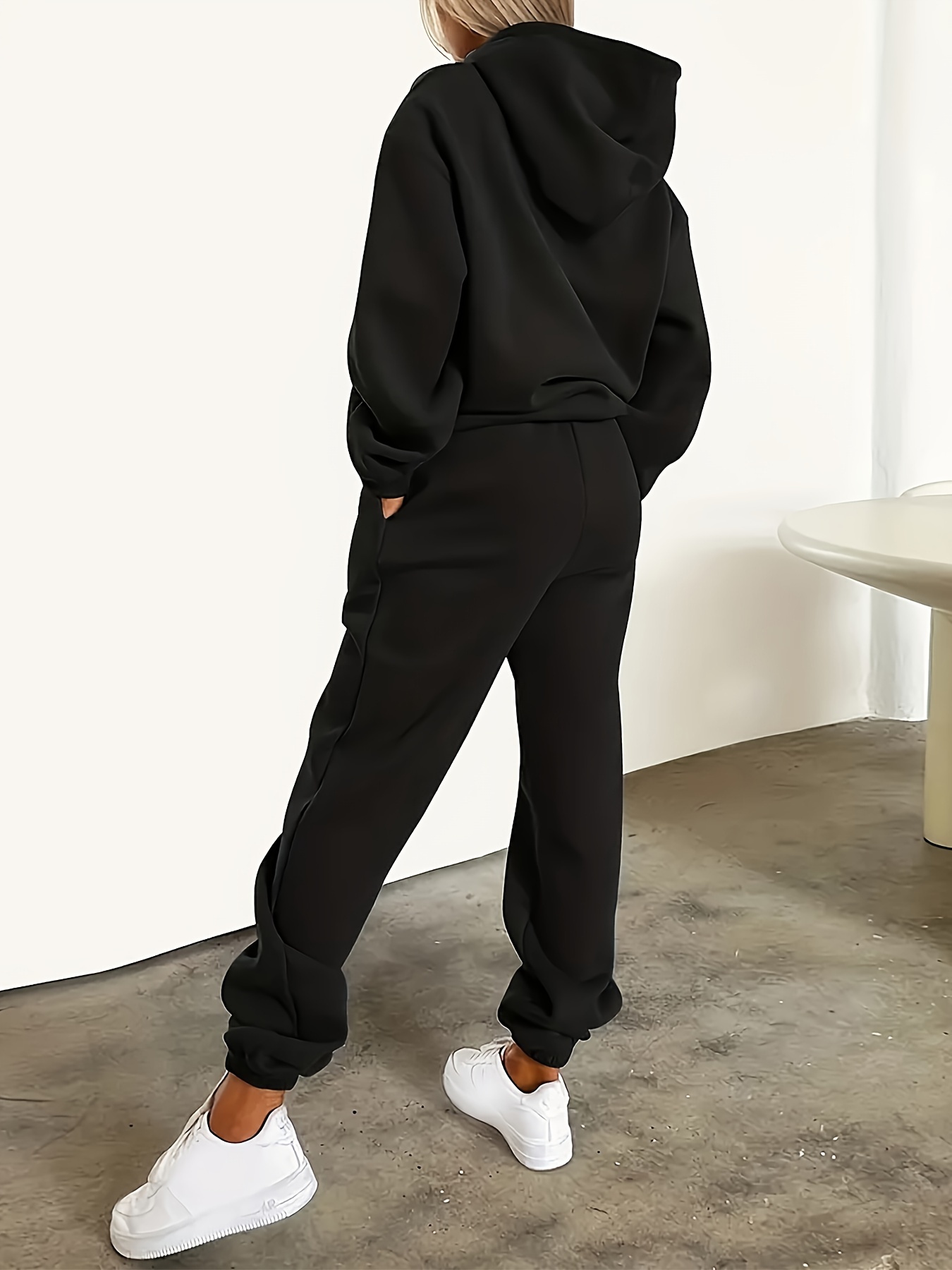 [Chicago U.S.A. Print Hoodie Set] Red Polyester Women's Chicago U.S.A. Letter Print Hoodie & Pants Set - Drawstring, Machine Washable Casual Outfit