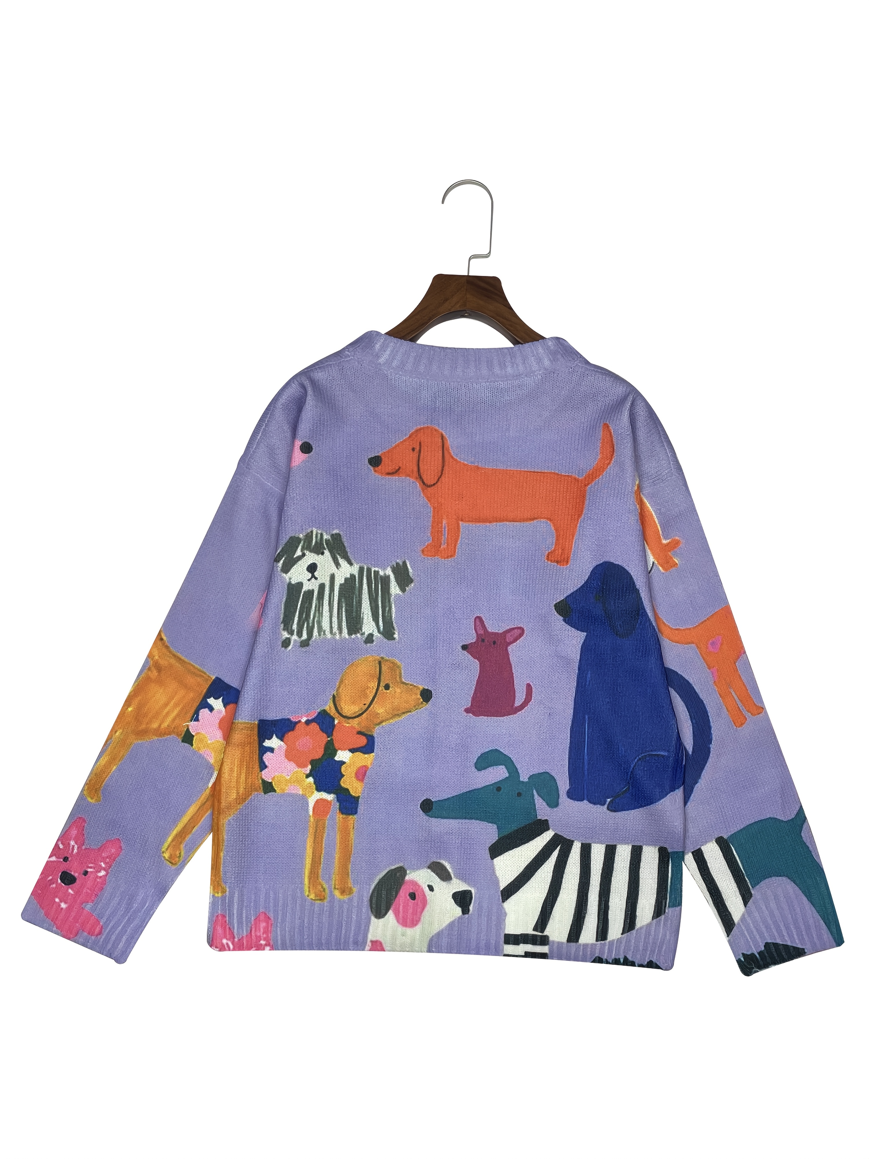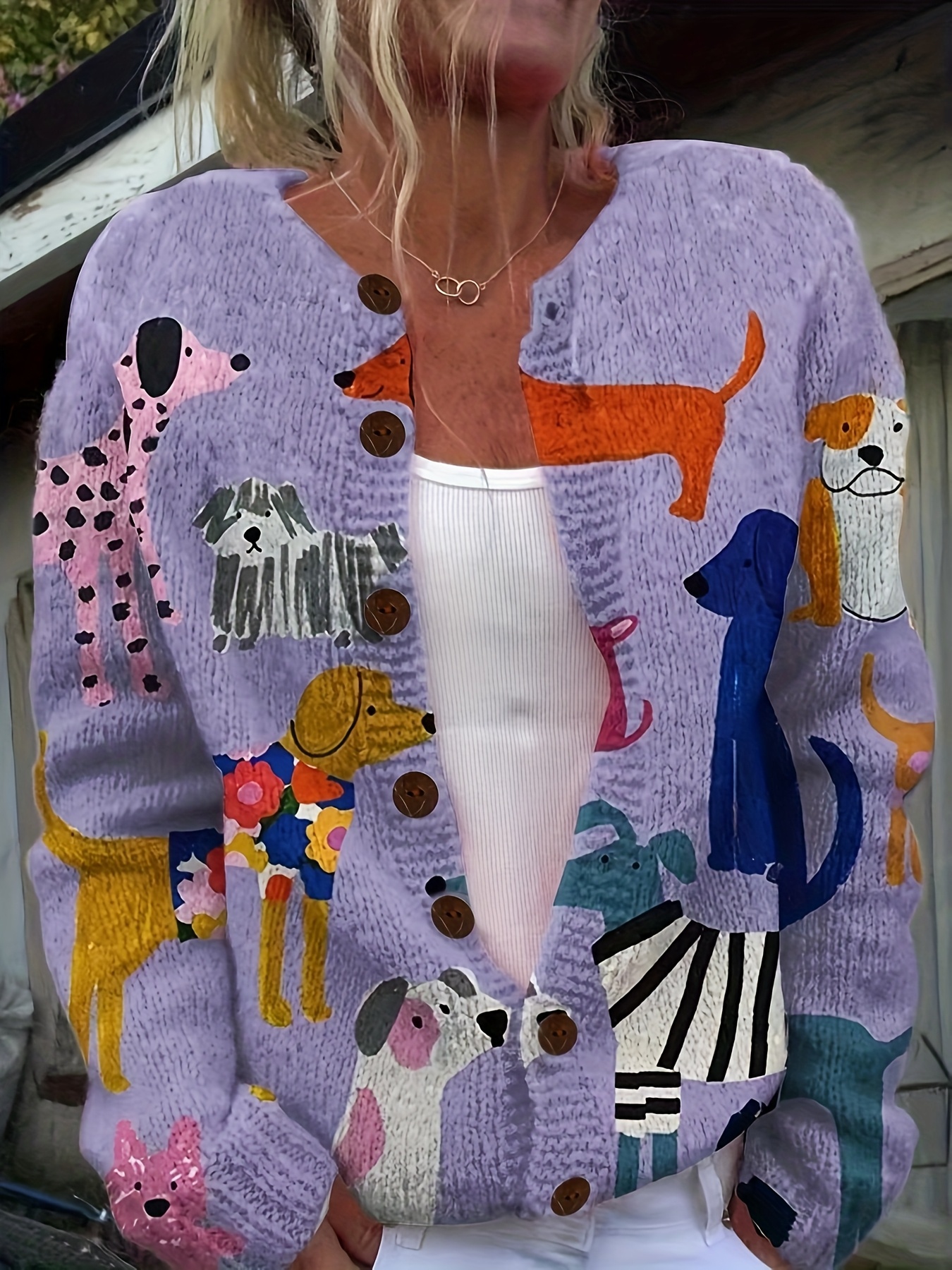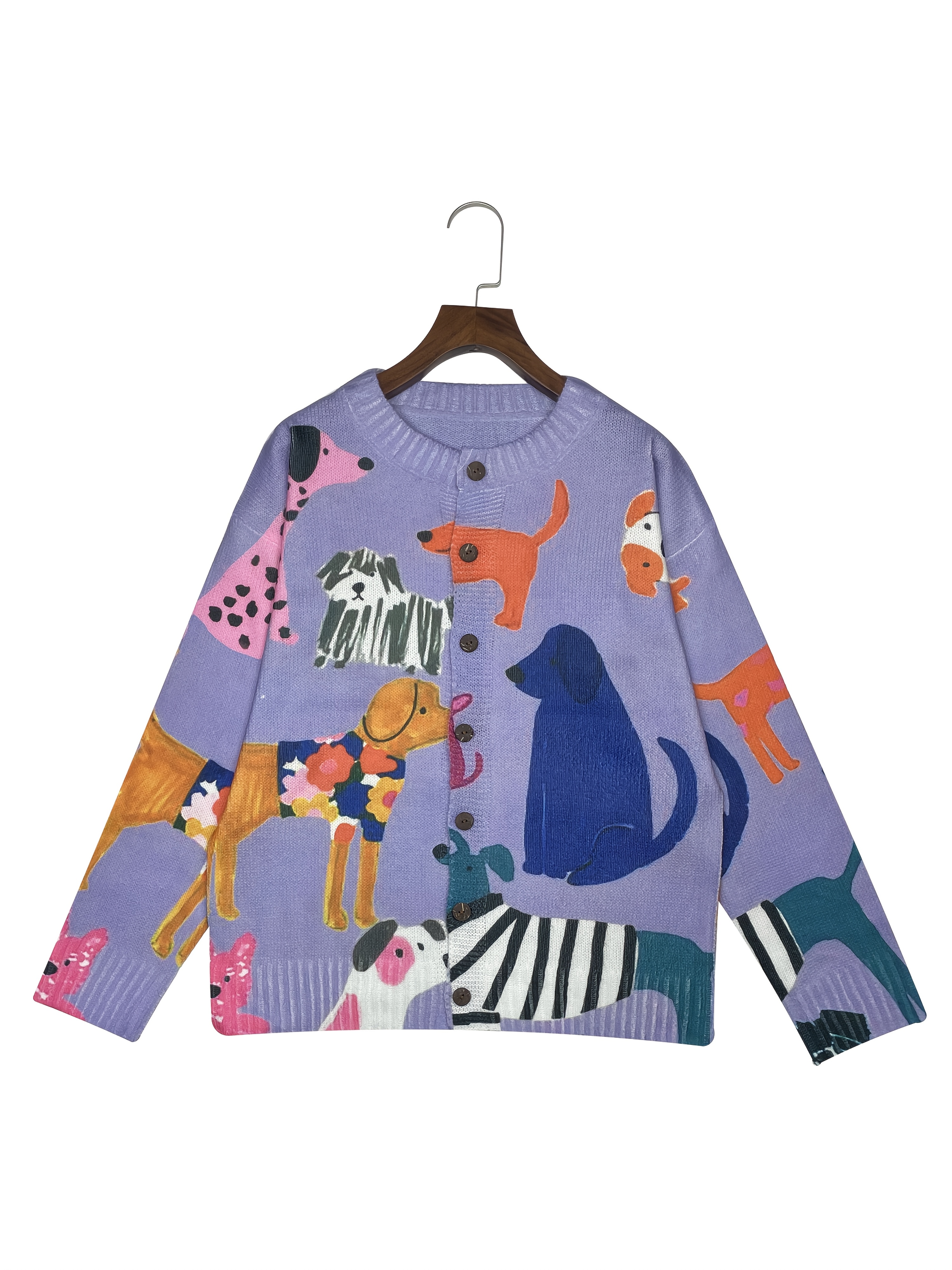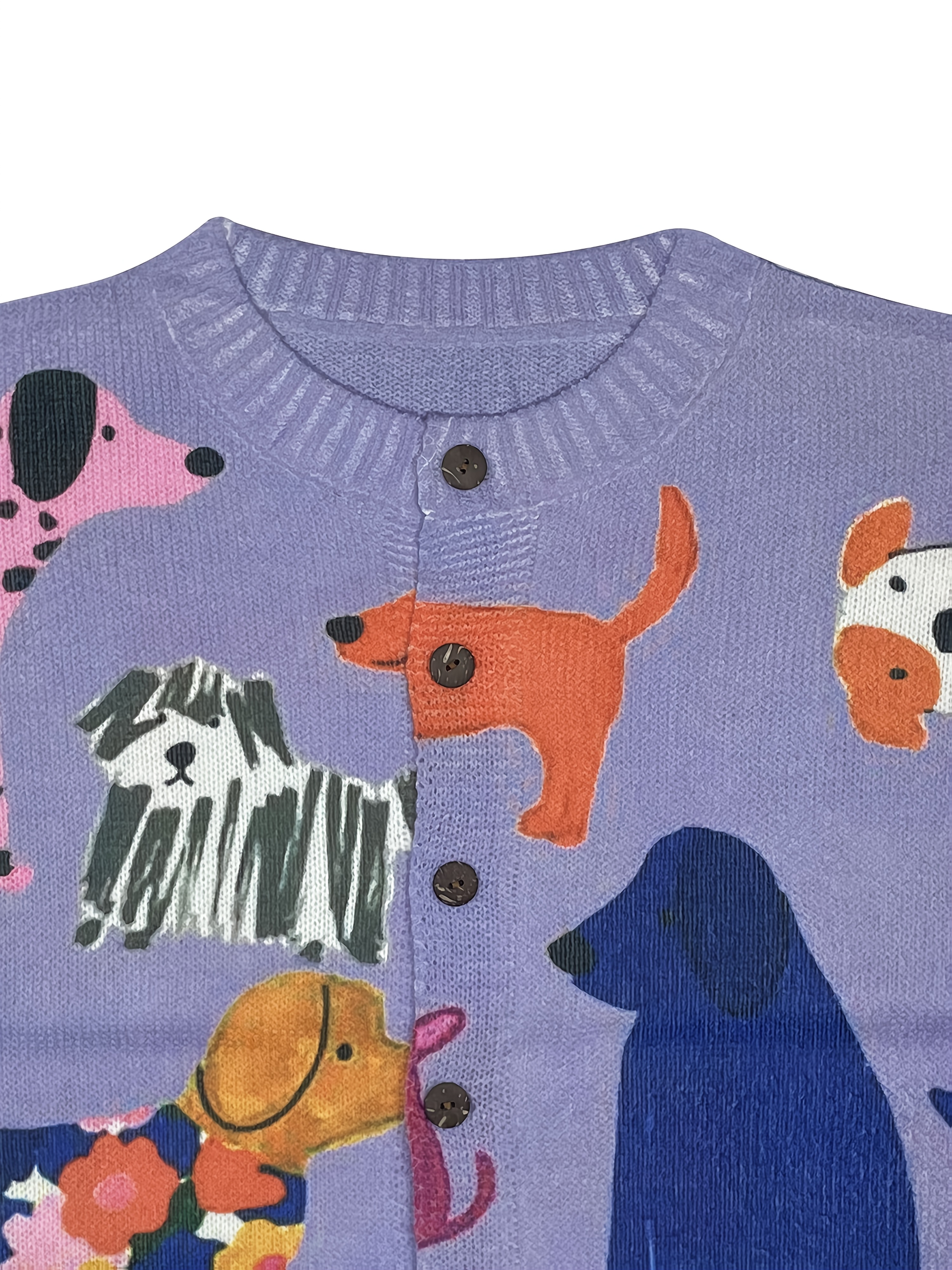 Women'S Playful Dog Print Cardigan - Young Style, 3D Printed, Polyester Knit with Button Front and Colorful Canine Design, All-Season Comfort