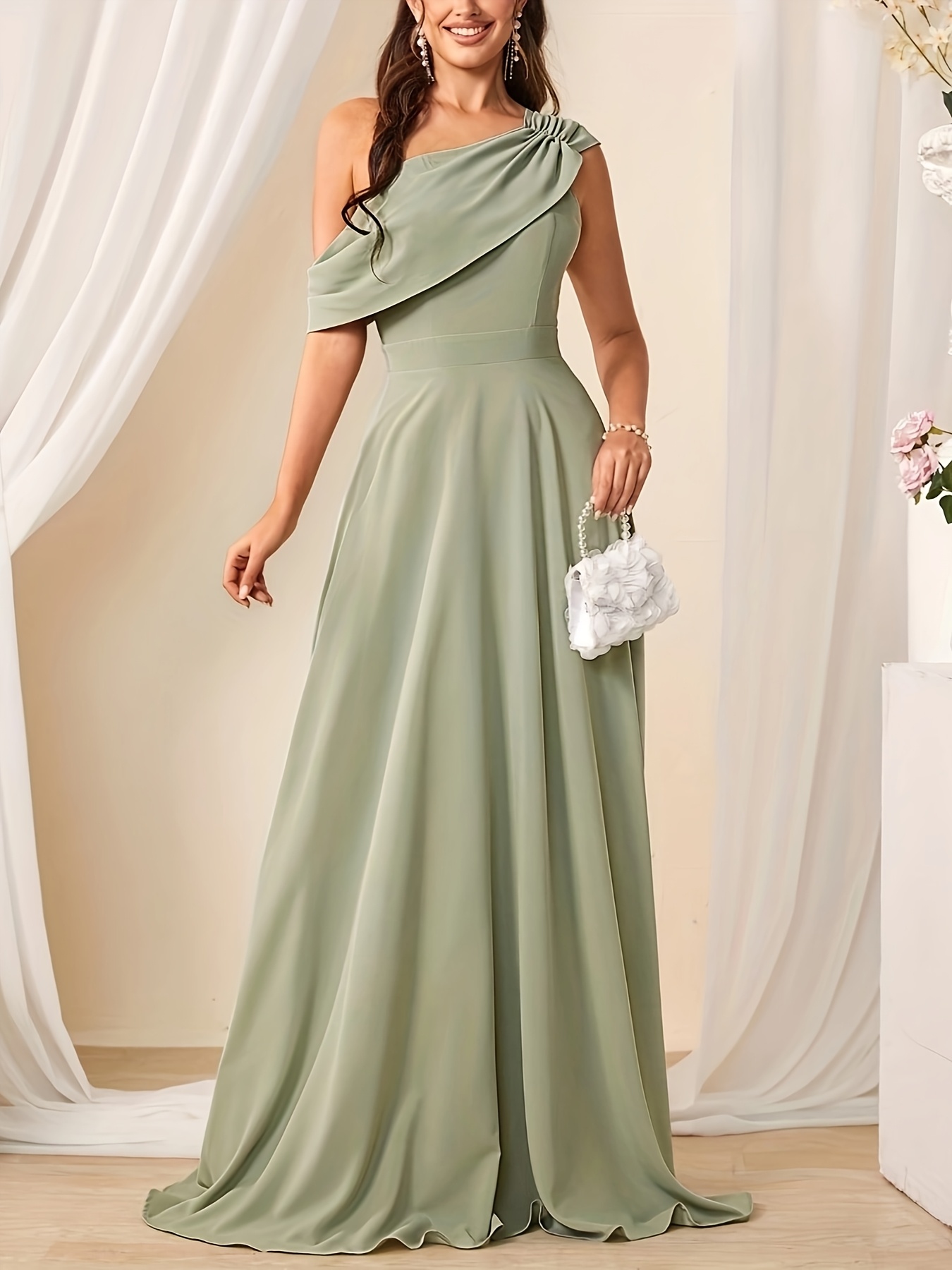 Elegant Mint Green One-Shoulder Chiffon Maxi Dress for Women - Sleeveless, Flowing Design with Ruched Detail, Perfect for Weddings, Parties, and Formal Events, Formal Event Attire|Ruched Detail Dress|Polyester Fabric